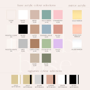 - Your choice of acrylic colours, text and fonts